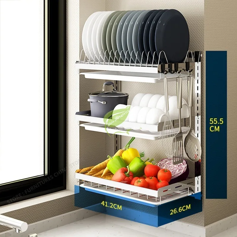 38%Multifunction Drying Rack Kitchen Cup Holder Storage Shelf Rack Kitchen Support Wall Hooks For P