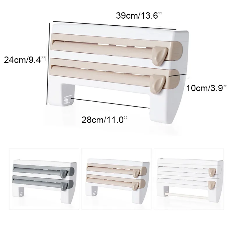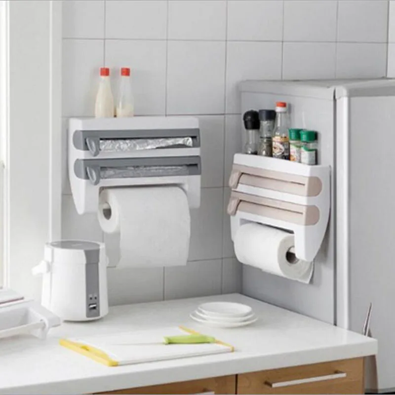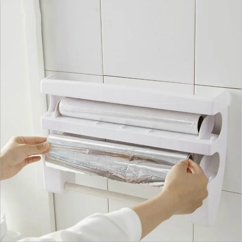 HIGH QUALITY QQJJPlastic Refrigerator Hanging Barbecue Cling Film Storage Rack Wrap Cutter Wall Hanging Paper To